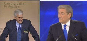 “Erdha me shumë dëshirë këtu t’ju sjell përshëndetjet e bashkëqytetarëve tuaj, muxhahedinëve të Tiranës, një komuniteti të vogël të mrekullueshëm, që një vit më parë lanë kampin Liberty dhe erdhën në kryeqytetin tonë. Një vit më parë qeveria amerikane dhe miqtë tuaj evropianë më kërkuan të marrë një vendim dhe në fund unë nuk hezitova aspak, në kuadër të të drejtave të njeriut. Unë shpresoj që qeveria aktuale e Shqipërisë të marrë të njëjtin vendim për bashkëpatriotët tuaj që mund të vijnë nga kampi Liberty”