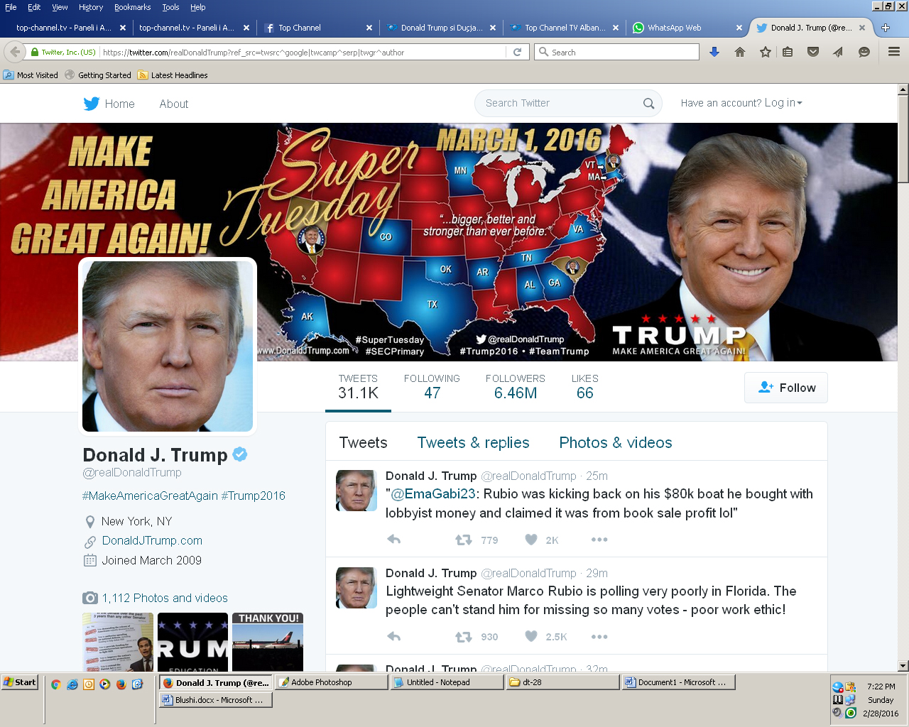 Sigurisht, në 2016 shkrimi i tij ka gjetur më shumë skeptikë sesa përkrahës, por ai që ja lehtëson më shumë punën duket se është vetë kandidati favorit i republikanëve në garën për Shtëpinë e Bardhë.