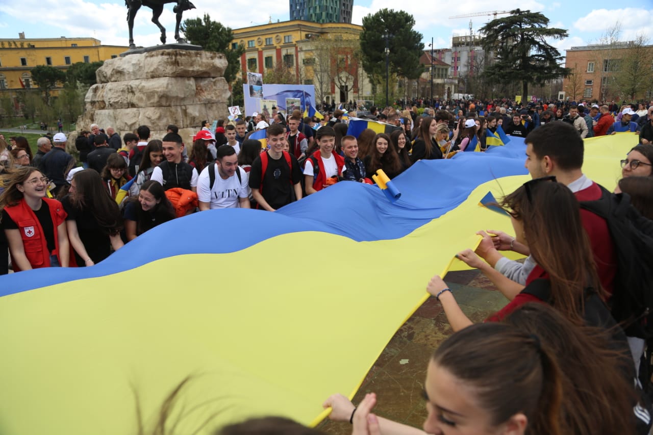 Manifestimi ka nisur në orën 12:00 deri në orën 15:00. I pranishëm është dhe ambasadori i Ukrainës në Tiranë, Volodymyr Shkurov.