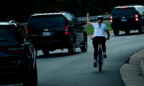 Juli Briskman bëri bujë në rrjetet sociale me një foto ku ajo shfaqej duke i treguar gishtin e mesit autokolonës së presidentit amerikan. foton ajo e...